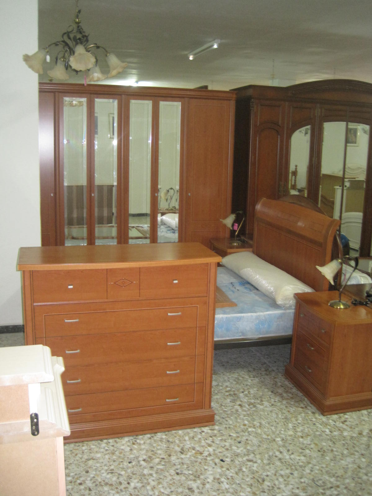 Dormitorio matrimonio con armario 6P y cuatro lunas Color nogal